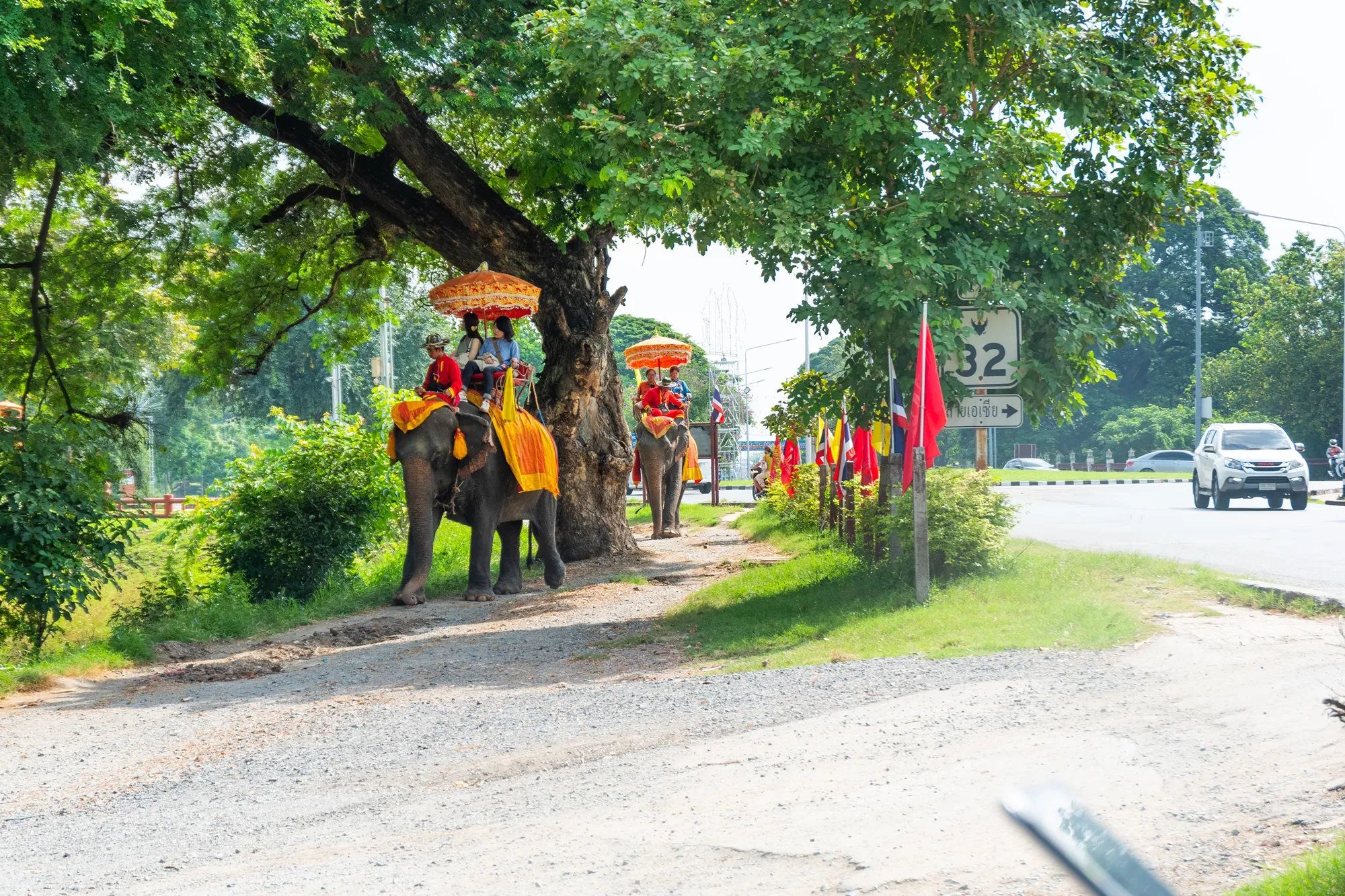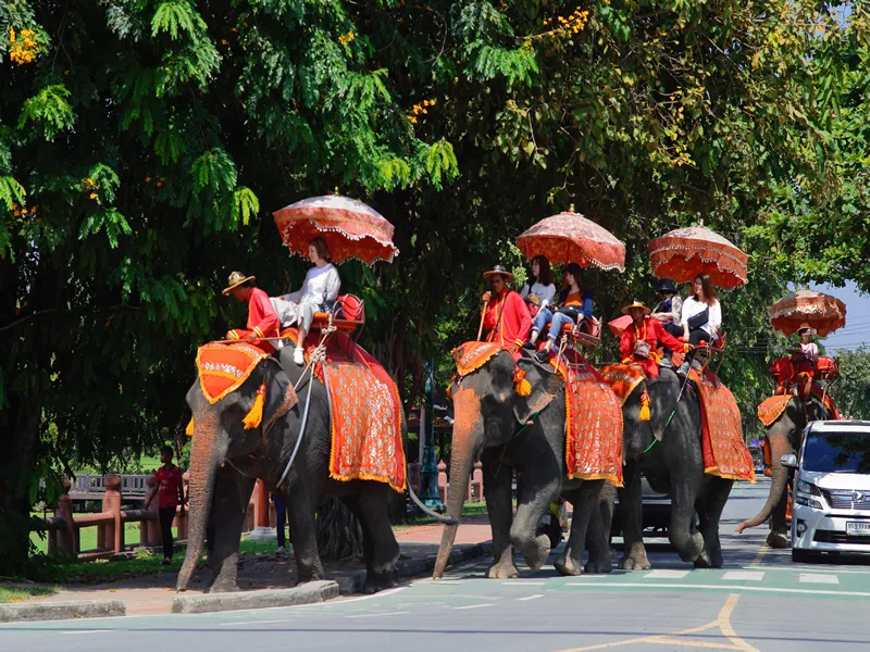 During your elephant ride, you'll be taken on a scenic route through the lush countryside of Ayutthaya. Along the way, you'll pass by ancient temples and ruins, providing a glimpse into the city's rich history. You may also encounter local villages and markets, giving you a taste of everyday life in Thailand.