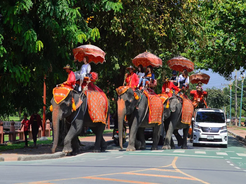Hop on a bus and take in the sights and sounds of Thailand's bustling streets as you make your way to Ayutthaya Elephant Village. You can choose between an air-conditioned bus for added comfort, or ride like a local on the ordinary bus.