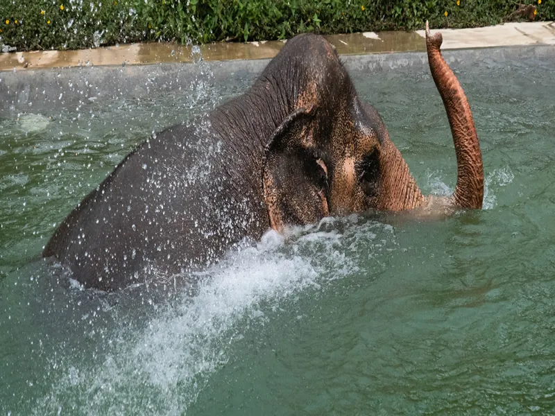 The highlight? Witnessing their playful side. Elephants relish the sanctuary’s custom-built pools, splashing about and spraying water with delight. Mud baths follow, a critical and joyful part of their natural behavior that helps protect their skin and regulate temperature. Seeing these creatures indulge in pure, unrestrained bliss is a sight that will stay with you forever.