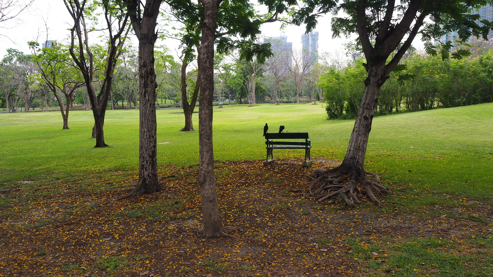 The park's trails are a visual feast, lined with towering trees that form a natural canopy overhead, filtering the sunlight into a gentle, dappled glow. As you walk or jog along these paths, it's easy to feel a world away from the urban hustle and bustle. Every turn reveals a new vista—perhaps a sudden splash of colorful blossoms or the sight of playful squirrels darting across your path.