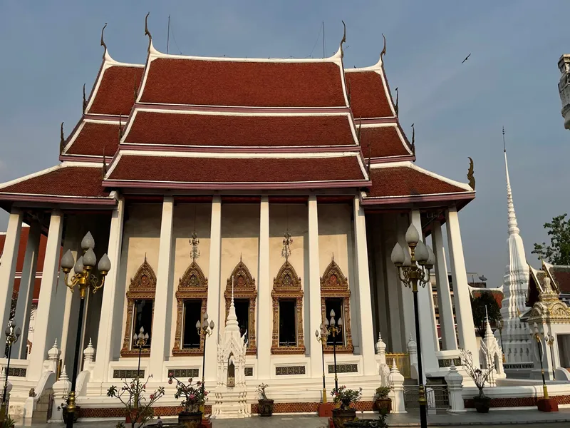- Disembark at Memorial Bridge Pier: From here, it's a short taxi ride or a 15-minute walk to Wat Intharam Worawiharn.