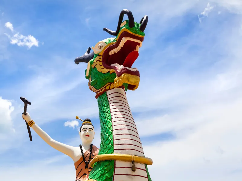 - You’ll find Buddha statues peppered across the landscape, alongside mythical figures and captivating waterfalls.