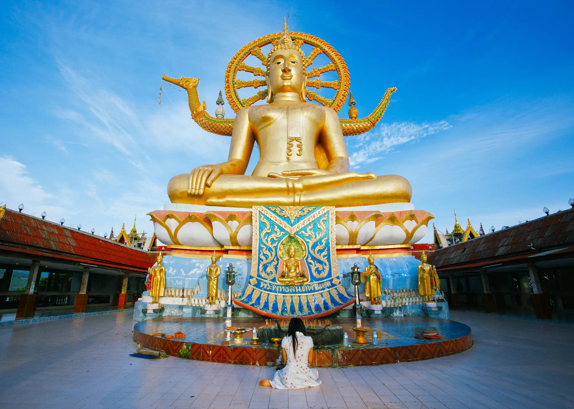 Beyond the architectural details, what makes Wat Phra Yai truly unique is the spiritual atmosphere created by its design. Every element of the temple feels purposeful, with aesthetic beauty and symbolism combining to evoke a sense of awe and peace in equal measure. The careful placement of shrines, the protective presence of the Nāga, the seamless blending of religious influences, and the grand scale of the Buddha statue all work together to make Wat Phra Yai not just a physical structure but a space that feels sacred, alive, and profoundly moving.