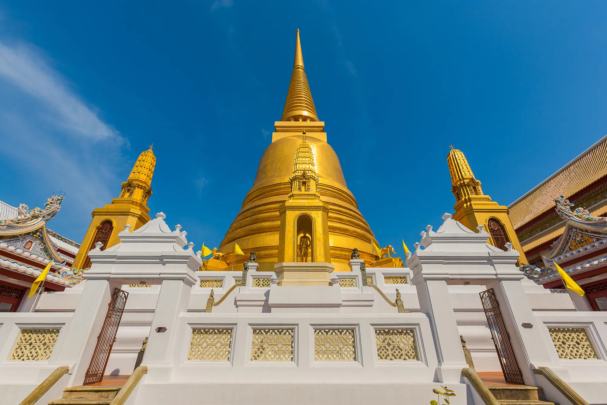 Just a 10-minute walk from Wat Bowonniwet Vihara, Khao San Road is a vibrant street renowned for its eclectic mix of street food, bars, and shops. It’s a must-visit for any traveler seeking a lively atmosphere.